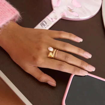 Gold Plated Triple Layer Heart Pearl Ring Set – Stainless Steel