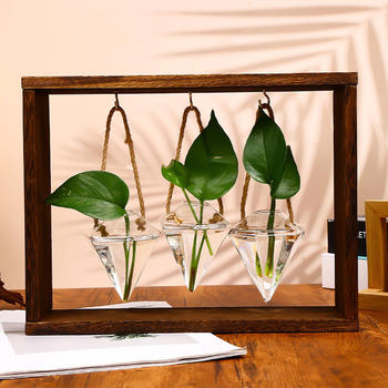 Creative Glass Desktop Planter Vase with Wooden Holder