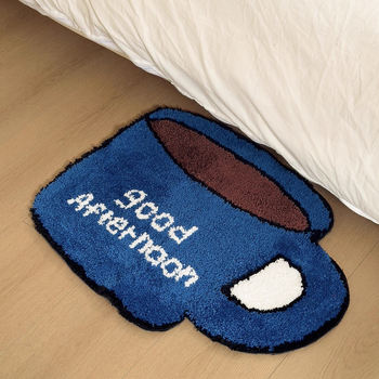Blue Cup Tufted Bathroom Mat Anti-Slip Soft Rug for Bedroom & Home Decor