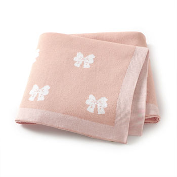 Cotton Baby Blanket Knit Bow Soft Swaddle for Newborns, Toddlers & Cribs