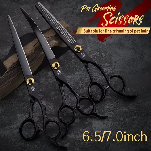 These scissors are built with quality and performance in mind. Their JP440C steel blades are sharpened for long-lasting edge retention, allowing for effortless, crisp cuts. Choose between straight cutting shears, curved shears for shaping, thinning shears for blending, or a stylish black sawtooth option for controlled cutting. They’re suitable for grooming dogs, cats, and other furry companions.
