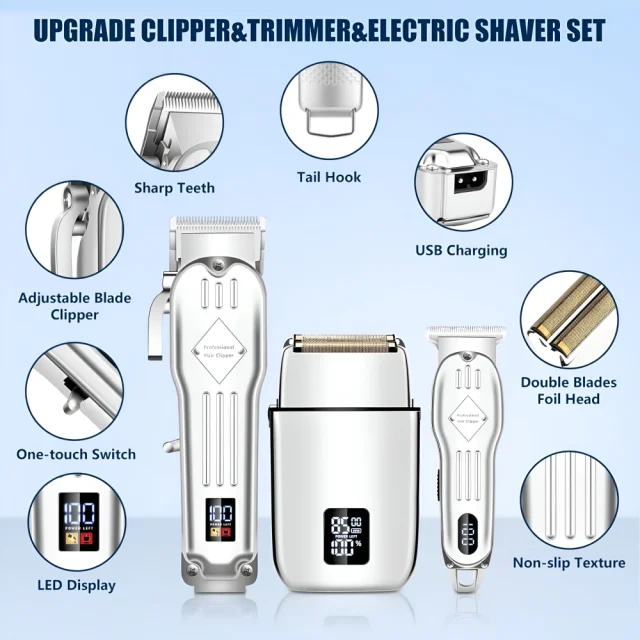 • Versatile 3-in-1 Design: Clip, trim, and shave with one complete set.
