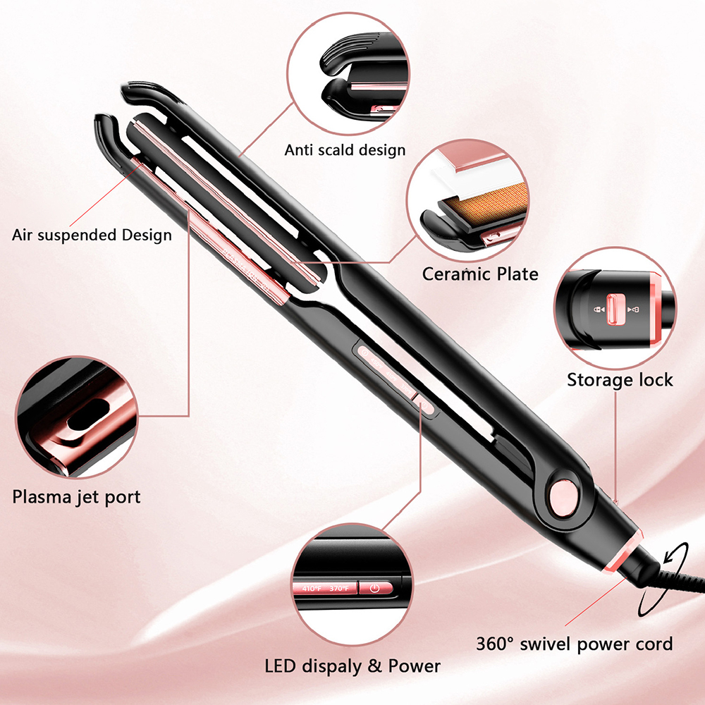 Transform your hair styling routine with the ultimate hair straightener designed for professional results at home. This **2-in-1 Flat Iron** combines advanced technology with sleek design, allowing you to straighten and style your hair with ease, all while ensuring healthy, frizz-free results. Featuring suspended air plates for better hair contact, this tool is built to handle all hair types, from fine to thick, delivering salon-quality smoothness and shine.