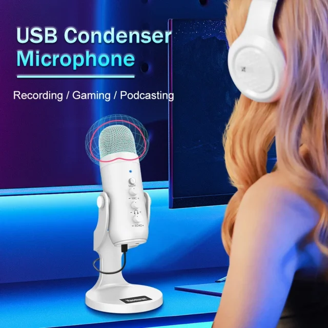 Step up your audio quality with this professional white USB condenser microphone, designed for creators who want rich, crisp, and studio-ready sound. Whether you’re streaming, podcasting, recording vocals, gaming, or hosting online meetings, this microphone gives your voice the clarity and presence it deserves. Its advanced condenser technology captures every detail, making it ideal for both beginners and seasoned professionals.