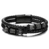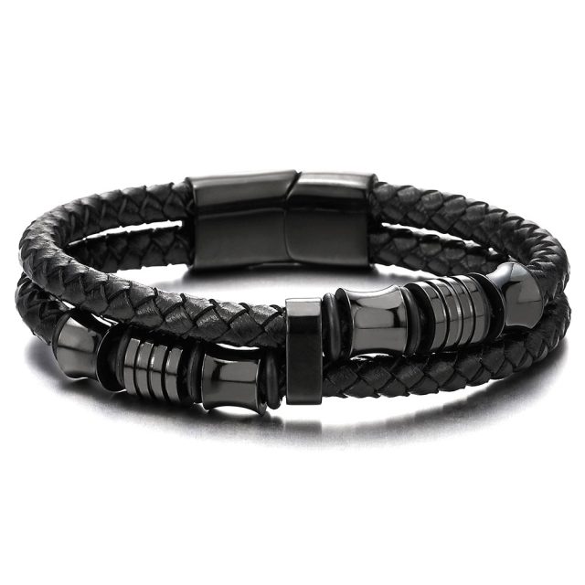 Punk Black Double Leather Bracelet for Men – Stylish Woven Wristband Gift