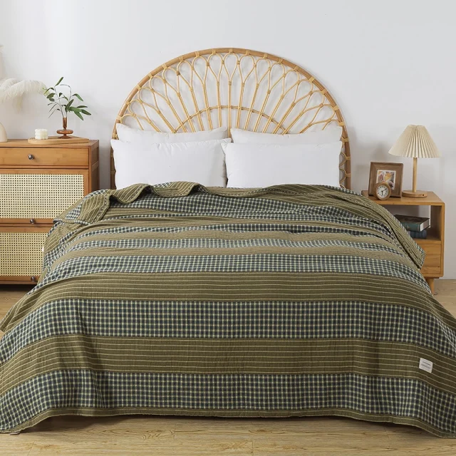 Transform your bedroom into a calm and inviting retreat with this breathable cotton muslin coverlet. Designed for effortless everyday comfort, it feels incredibly soft against the skin and drapes naturally over your bed without feeling heavy. The airy muslin texture creates a relaxed, lived-in look that brings warmth and simplicity to modern interiors. Finished with a subtle striped plaid pattern, this bedspread adds just the right touch of texture and style while keeping your space clean and uncluttered.