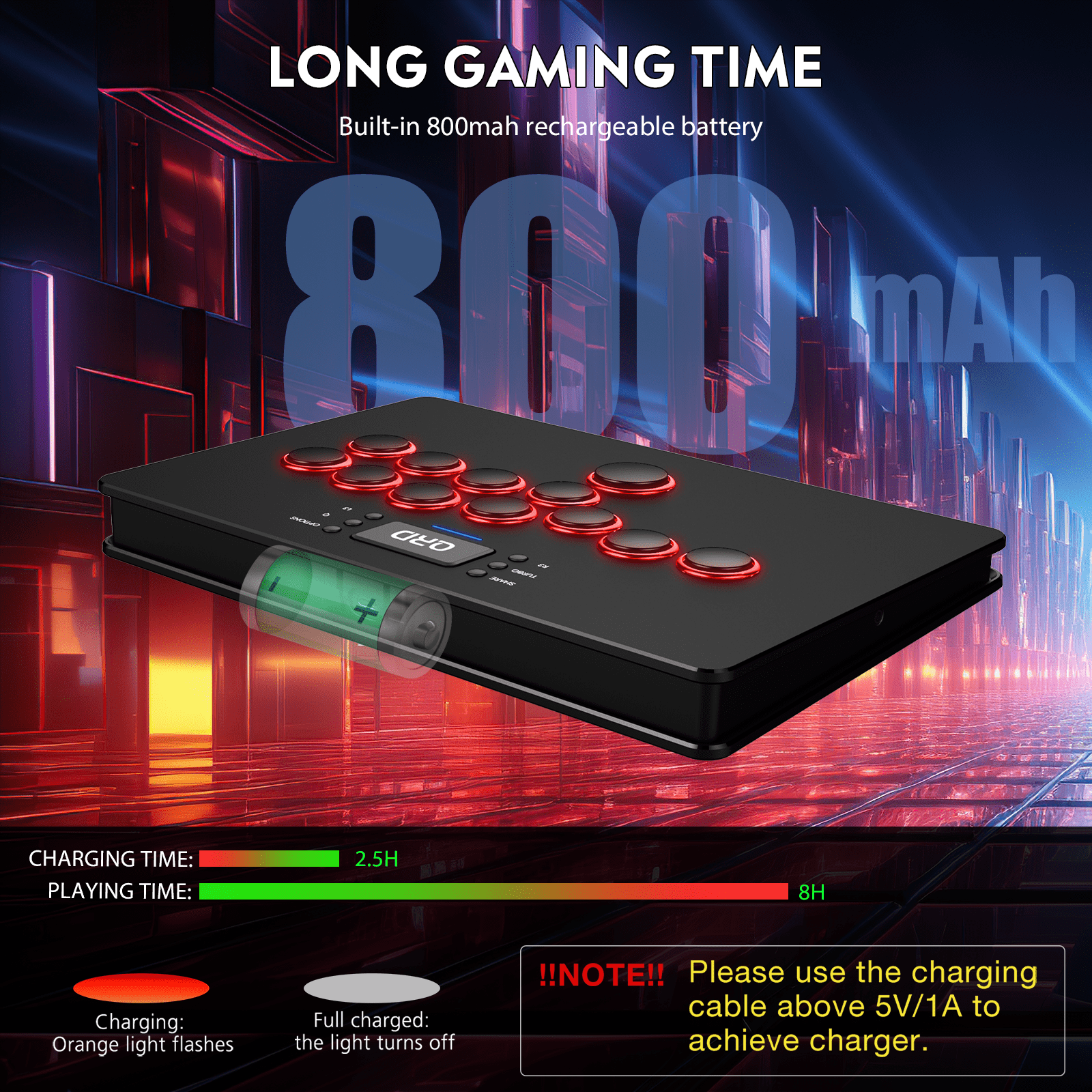 This controller comes packed with advanced features to give you a competitive edge. Enjoy silent, durable mechanical buttons that are replaceable for long-lasting performance. The larger button layout ensures comfortable gameplay during marathon sessions. Connect wirelessly or via USB, with an 800mAH battery providing up to 8 hours of uninterrupted play, while the fast 3-hour charge keeps you ready for extended battles. Add to that RGB LED lights with customizable patterns, programmable turbo functions, and touch-pad support for enhanced gameplay versatility.