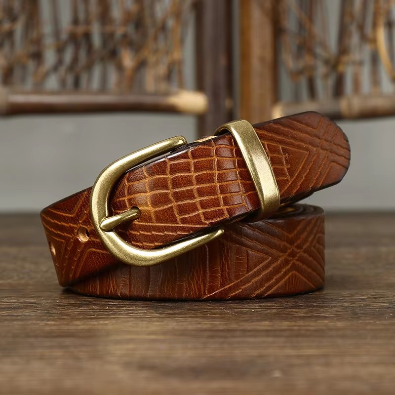 Genuine Leather Belt for Women with Copper Buckle – Stylish & Durable Fashion Accessory