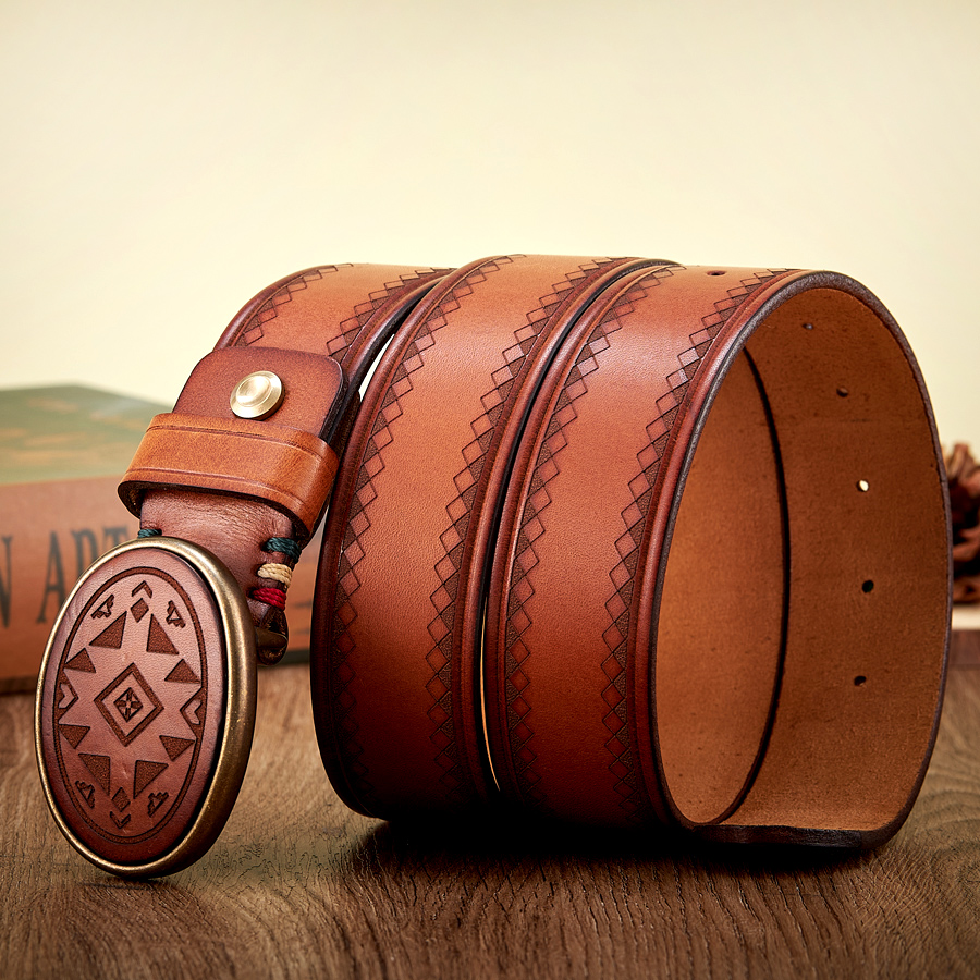This belt stands out thanks to its extra-thick cowhide construction and detailed laser engraving. The material naturally becomes more supple and visually appealing with age, creating a personalized, worn-in look that tells your story over time. Its durability makes it ideal for daily use, while the elegant pattern elevates your style without being overly flashy.