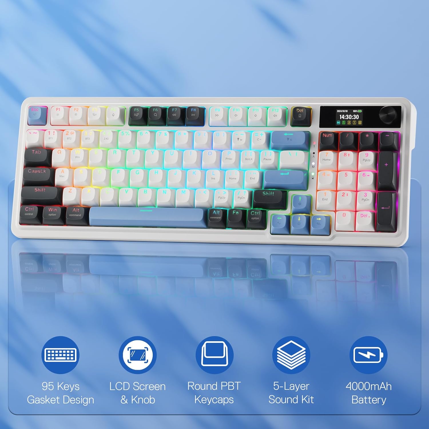 Wireless Gasket Gaming Keyboard with Hype Screen & Knob, 95 Keys Mechanical Keyboard
