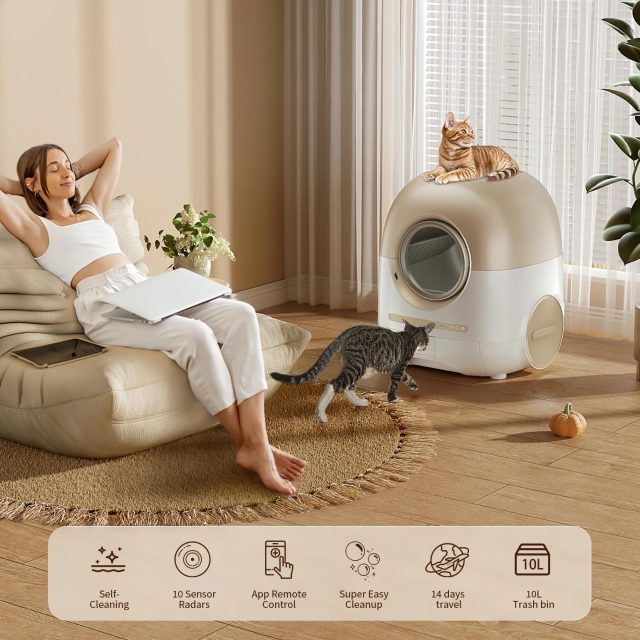 Transform your pet care routine with this smart, self-cleaning cat litter box—the perfect balance of innovation, hygiene, and comfort. Keep your space clean, your cat happy, and your life simpler with one smart solution. It’s time to experience the future of feline care—because your cat deserves the best.