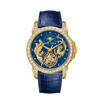 Step into a world where art meets precision. This exquisite men’s luxury watch combines powerful symbolism with refined craftsmanship. The round case, adorned in warm rose gold tones, frames a dial alive with intricate dragon and phoenix motifs—timeless emblems of strength, harmony, and prosperity. Diamond accents shimmer like stars around the design, while the deep blue leather strap adds a bold, regal contrast. Every glance at your wrist becomes a statement of taste, confidence, and distinction.