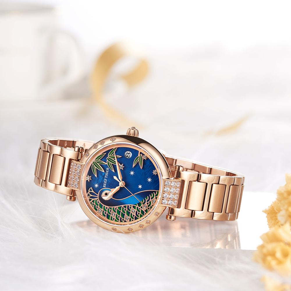 Step into effortless elegance with this stunning rose gold automatic women’s bracelet watch. Crafted with precision, it combines classic charm and modern design, giving you a timepiece that radiates sophistication. The numberless round dial, set beneath a lustrous shell face, exudes minimalistic luxury, while the smooth bracelet band wraps gracefully around your wrist for all-day comfort.