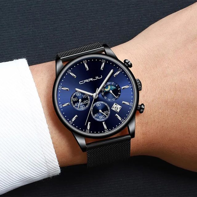 Elevate your look with this stunning men’s luxury chronograph watch designed for confidence and versatility. Its striking all-blue mesh strap and rose-gold case bring sophistication to every occasion — from boardroom meetings to weekend adventures. Built for the modern man, this timepiece blends elegant design with rugged performance, offering a balance of class and durability you can rely on every day.
