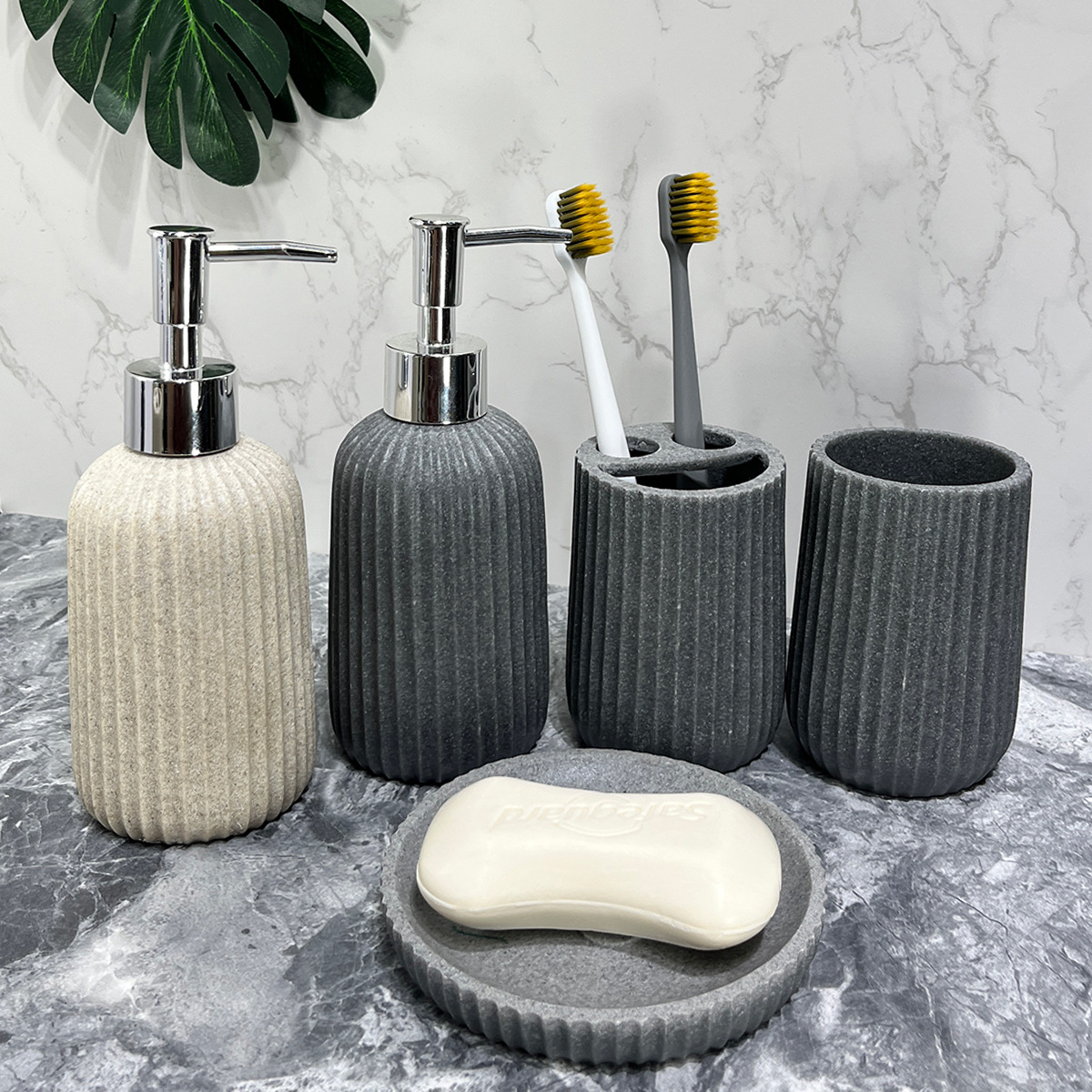 Give your bathroom a refined, coordinated look with this Resin 4-Piece Bathroom Accessories Set. Crafted from premium resin, this elegant collection combines modern simplicity with durability, adding a touch of sophistication to your daily routine. Perfect for any décor style, it instantly elevates your sink or vanity area while keeping your essentials neatly organized.