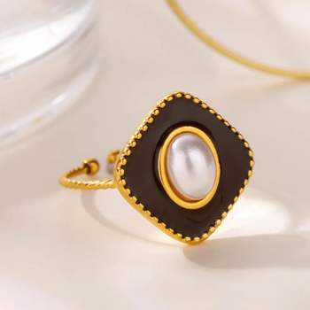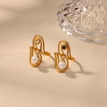 18K Gold Plated Stainless Steel Geometric Imitation Pearl Ring for Women
