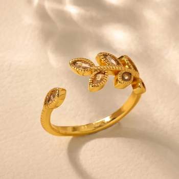 Crystal Geometric Vintage Leaf Ring – 18K Gold Plated Zircon Jewelry for Women