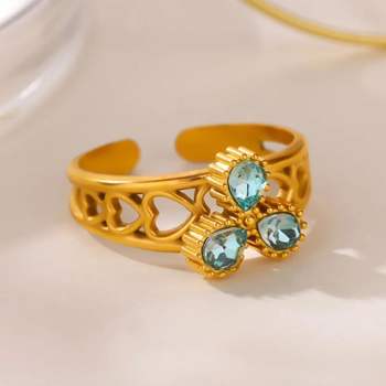 Luxury Blue Zircon Teardrop Ring for Women – Gold-Plated Stainless Steel