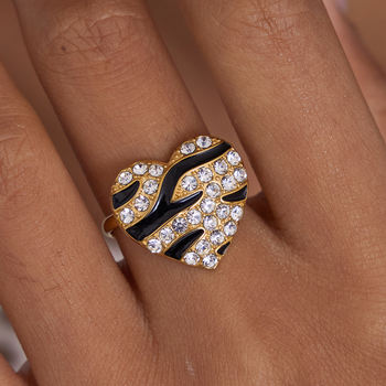 Elegant 18K Gold Plated Rhinestone Heart Adjustable Ring