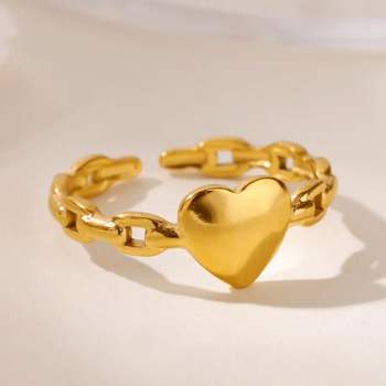 Adjustable Heart Ring for Women – Gold Stainless Steel Fashion Jewelry