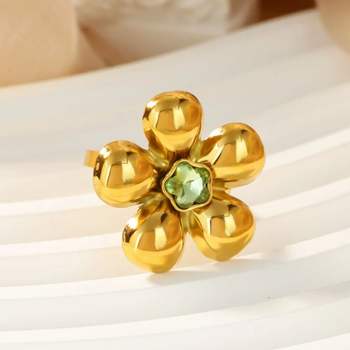 Gold Zircon Flower Adjustable Ring for Women – Stainless Steel Luxury Jewelry