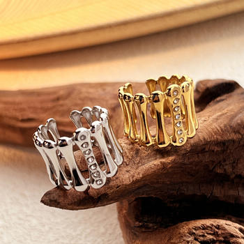 Geometric Hollow Stainless Steel Zircon Ring – Versatile Daily Jewelry