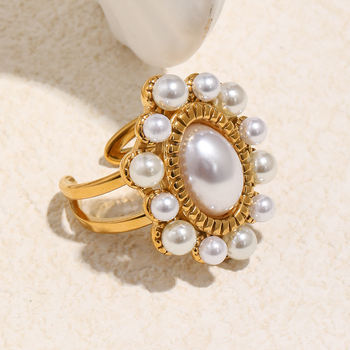 Women’s Open Ring with Acrylic Pearl & 18K Gold Plating – Waterproof Fashion Jewelry