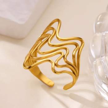 Gold Wave Open Ring for Women – Minimalist Stainless Steel Jewelry