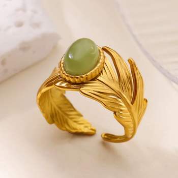 Gold Leaf Adjustable Natural Stone Ring for Women