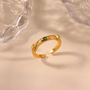 18K Gold Plated Stainless Steel Open Double Geometric Ring for Women