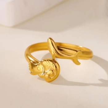 Stainless Steel 18K Gold Plated Marine Life Geometric Ring for Women – Wedding & Christmas Jewelry Gift