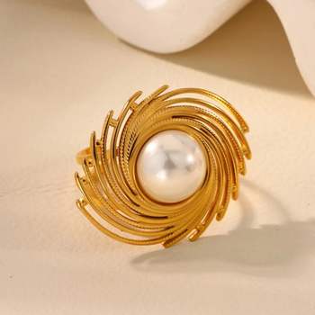 Vintage Tassel Pearl Geometric Ring for Women – 18K Gold Plated Stainless Steel Jewelry