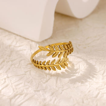 Adjustable Stainless Steel Leaf Ring for Women