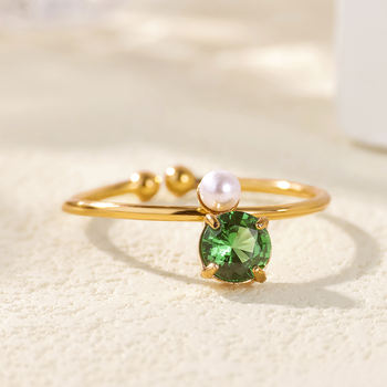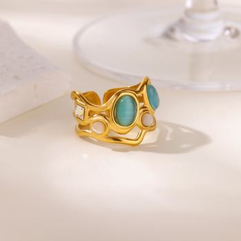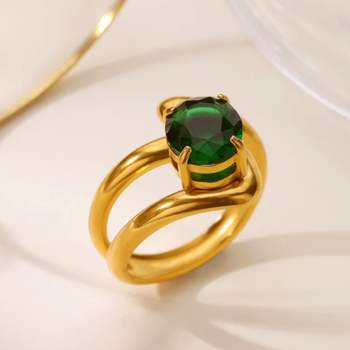 Elegant Green Zircon Geometric Ring for Women – 18K Gold Plated Stainless Steel