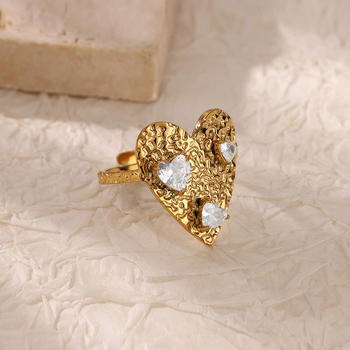 Gold Heart Hollow Open Ring for Women – Trendy Stainless Steel Jewelry