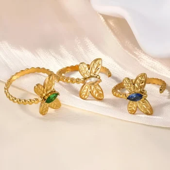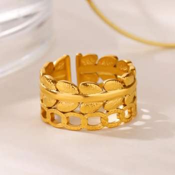 Gold Geometric Leaf Adjustable Ring for Women – Stainless Steel Jewelry