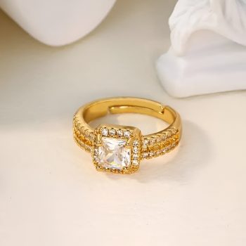 Luxury 18K Gold Plated Zircon Square Adjustable Ring for Women