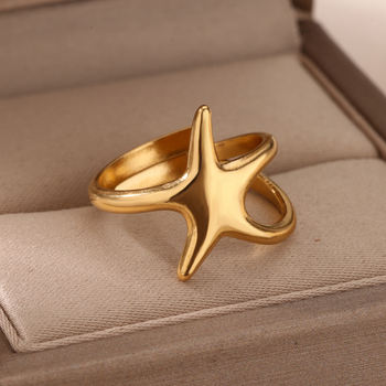 Vintage Starfish Gold Adjustable Stainless Steel Ring for Women