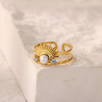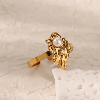 Zircon Pearl Irregular Gold Stainless Steel Geometric Ring for Women