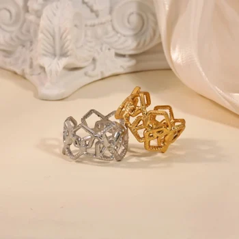 Vintage Geometric Hollow Pentagon Open Ring for Women and Men – Gold Stainless Steel Punk Jewelry