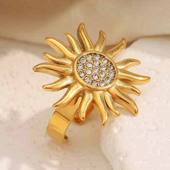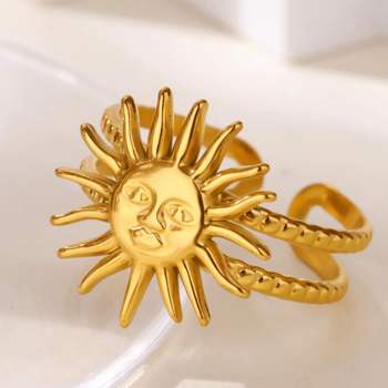 Retro Sun Zircon Open Ring in 18K Gold Plated Stainless Steel