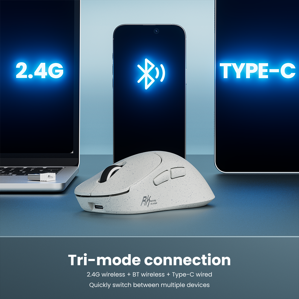 • Tri-Mode Connectivity: Easily switch between wireless, Bluetooth, or wired use.