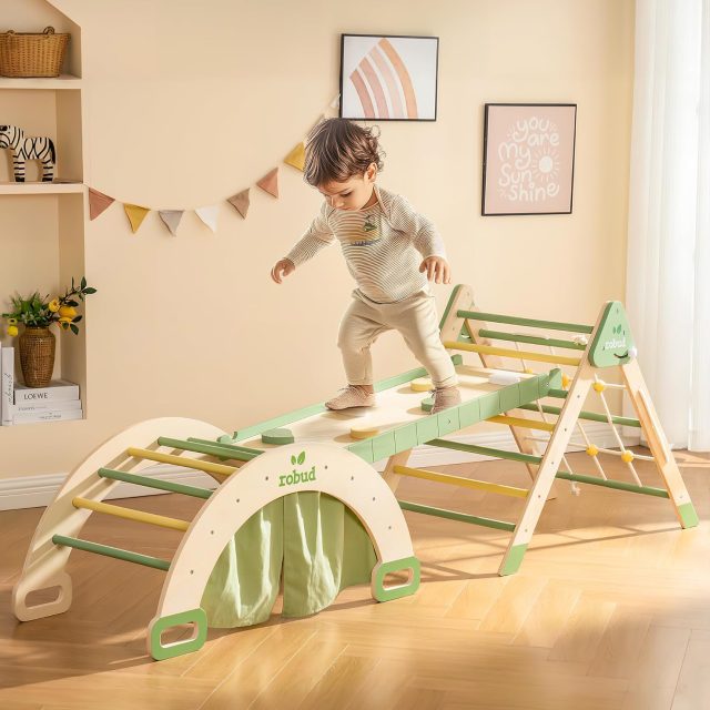 Turn your child’s everyday playtime into an exciting indoor adventure with the 7-in-1 Foldable Wooden Climbing Triangle Set. Designed to spark curiosity and confidence, this Montessori-inspired play gym encourages children to climb, slide, crawl, and explore safely while developing balance, strength, and creativity. Crafted from premium wood with smooth, rounded edges, it offers a durable and child-safe structure that blends seamlessly into any home.