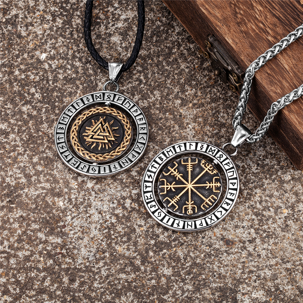 Viking Runes Compass Necklace Mens Norse Valknut Vegvisir Pendant
