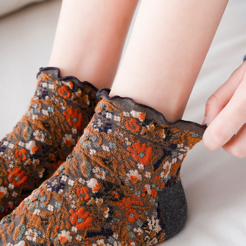 Step into comfort and style with these Floral Embroidery Ruffle Socks, designed for women who love a touch of elegance in their everyday wardrobe. These charming socks feature delicate floral patterns that add a playful yet refined touch to your outfits. Made from a breathable cotton blend, they’re perfect for the warmer months, keeping your feet cool and comfy all day long.