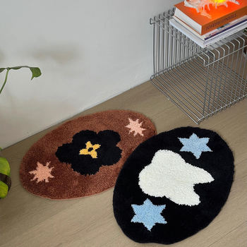 Soft Half Round Tufted Flower Carpet with Non-Slip Silicone Backing
