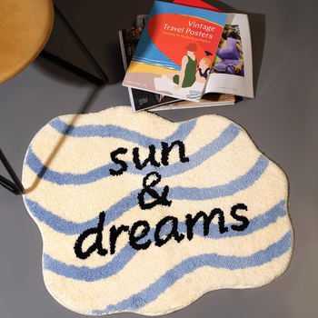Blue Cup Tufted Bathroom Mat Anti-Slip Soft Rug for Bedroom & Home Decor