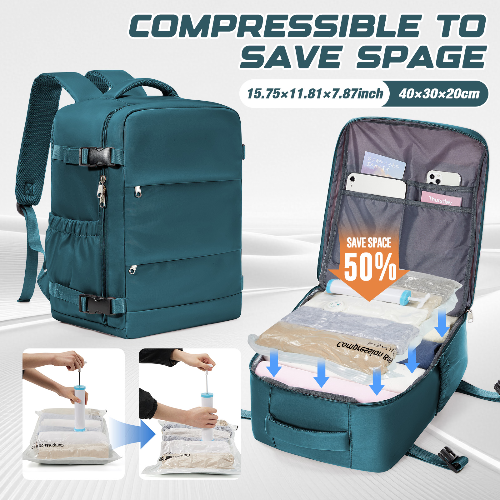What makes this bag special is its space-saving compression feature and smart interior layout that helps you pack efficiently without compromise. Durable, water-resistant, and easy to clean, it’s built to handle every adventure in comfort and style.