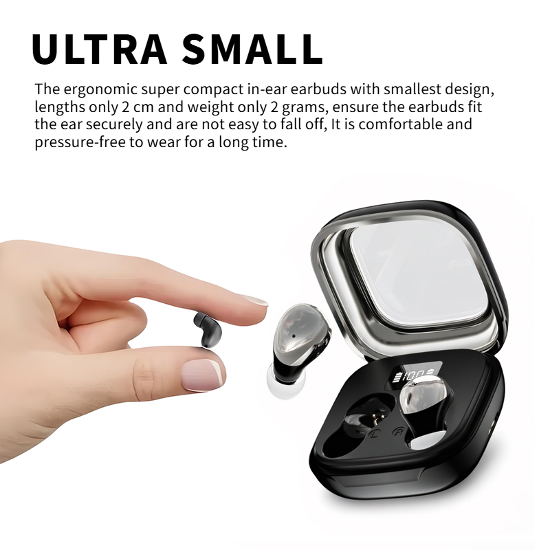 Drift into serenity with these ultra-compact wireless earbuds, crafted to give you uninterrupted rest and crystal-clear sound anytime, anywhere. Designed with your comfort in mind, these earbuds are made from soft, skin-friendly materials that feel weightless in your ears. They form a gentle, secure seal that passively blocks ambient noise, helping you relax and unwind even in noisy surroundings. Whether you’re slipping into sleep, tuning out on your commute, or focusing at work, these earbuds deliver a truly immersive experience.