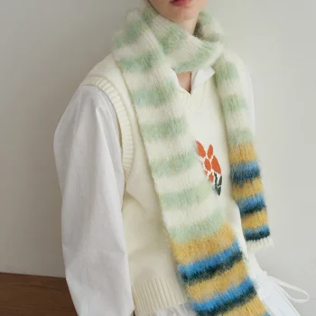 Luxury Y2K Winter Knitted Stripe Scarf for Women – Soft Warm Wrap